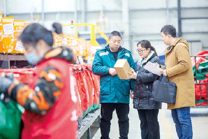河南省漯河市郾城區(qū)紀委監(jiān)委緊盯“四風(fēng)”新動向、新表現(xiàn),嚴查快遞送禮等隱形變異行為。圖為該區(qū)紀檢監(jiān)察干部在轄區(qū)物流園區(qū)核實相關(guān)問題線索。王曉 攝