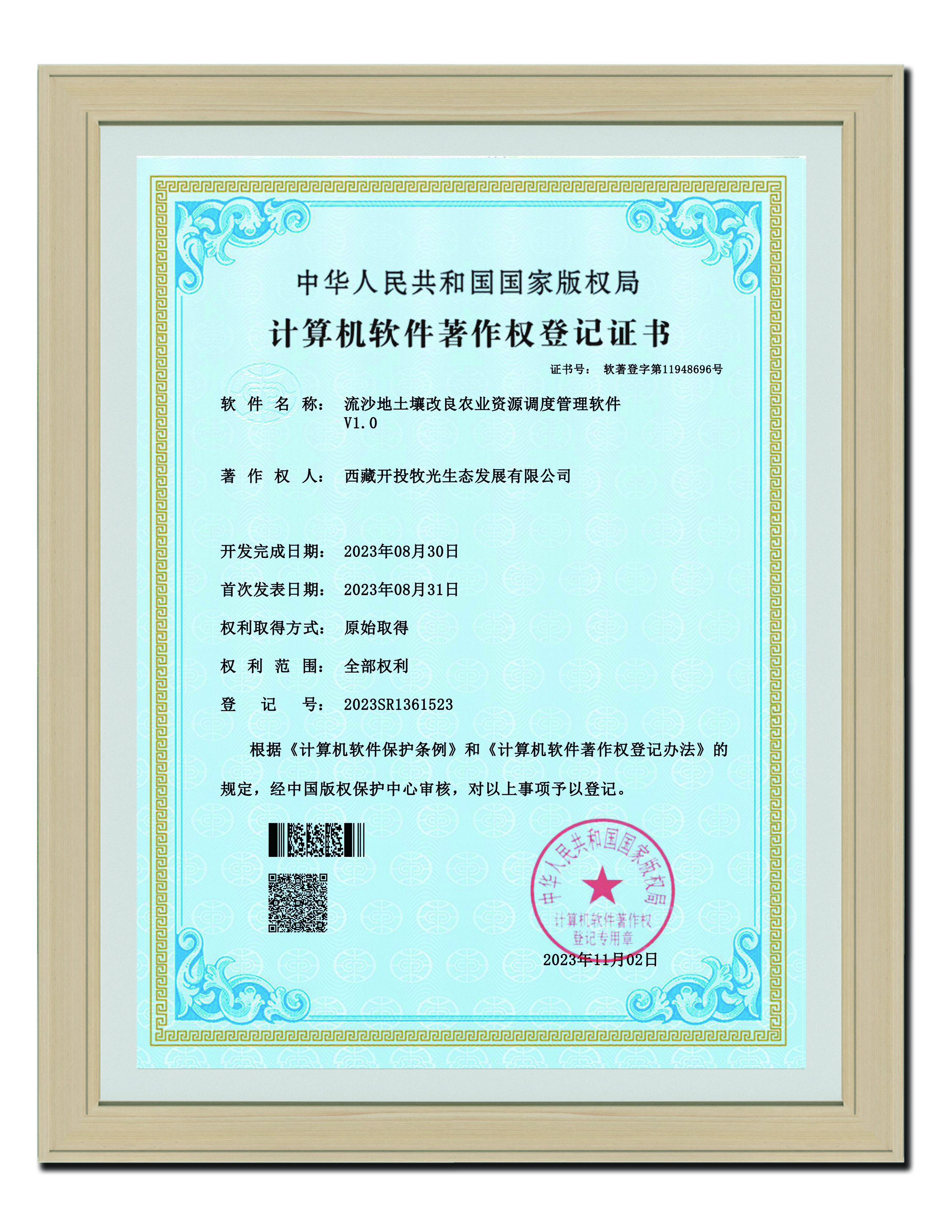 2023年11月2日 l流沙地土壤改良農(nóng)業(yè)資源調(diào)度管理軟件V1.0