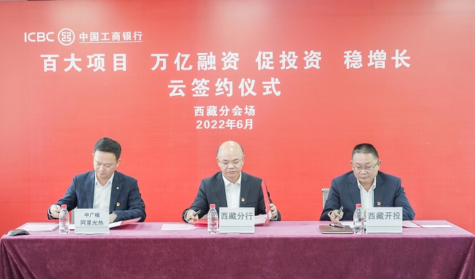 為深入貫徹黨中央“疫情要防住、經(jīng)濟(jì)要穩(wěn)住、發(fā)展要安全”重要決策部署,提升助力經(jīng)濟(jì)穩(wěn)增長服務(wù)水平,6月9日下午,中國工商銀行總行舉行了“百大項(xiàng)目 萬億融資 促投資 穩(wěn)增長”云簽約儀式。西藏開發(fā)投資集團(tuán)有限公司作為西藏自治區(qū)簽約重點(diǎn)客戶之一,在中國工商銀行西藏分會(huì)場簽訂清潔能源項(xiàng)目在“十四五”期間提供不超過100億元等值人民幣意向性融資額度合作協(xié)議。