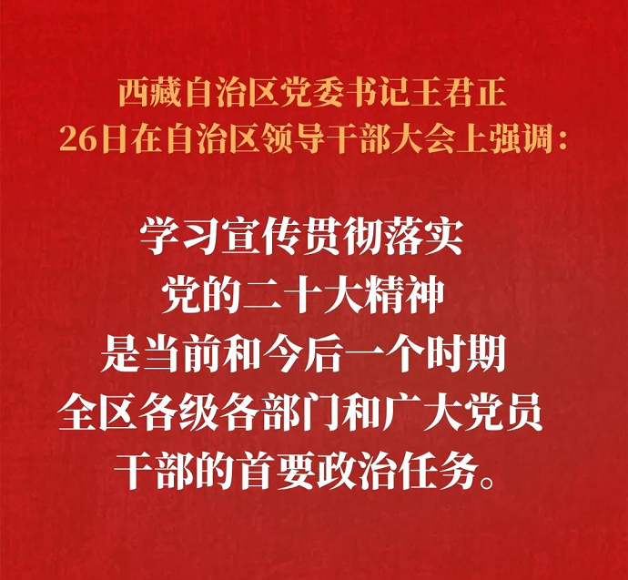 祁騰武要求,當前,一是要迅速掀起學習宣傳貫徹二十大精神的高潮。要突出學原文悟原理知原義,通過召開座談會、研討會、專家輔導講座等多種形式,切實把學習宣傳貫徹落實黨的二十大精神與習近平總書記關(guān)于西藏工作的重要指示和新時代黨的治藏方略結(jié)合起來,與自治區(qū)第十次黨代會精神結(jié)合起來,推動學習宣傳貫徹黨的二十大精神走深走實。二是要統(tǒng)籌推進復工復產(chǎn)、電力保供和項目建設工作,切實發(fā)揮作為全區(qū)骨干國有企業(yè)穩(wěn)經(jīng)濟大盤作用,確保黨的二十大提出的新部署新要求見行見效,把黨的二十大精神切實轉(zhuǎn)化為集團公司統(tǒng)籌經(jīng)濟效益和社會效益的生動實踐。三是要對標對表集團公司“三步走”戰(zhàn)略目標和年度經(jīng)營發(fā)展任務,把學習成效轉(zhuǎn)化為推動“三步走”跨越式發(fā)展、決戰(zhàn)四季度生產(chǎn)經(jīng)營工作、堅決完成全年任務目標的不竭動力,確保黨的二十大精神在西藏開投落實落地、開花結(jié)果。四是要善始善終,堅決打贏疫情防控攻堅戰(zhàn)。堅定必勝信心,克服麻痹思想、僥幸心理、厭戰(zhàn)情緒、松勁心態(tài),堅決守護好來之不易的抗疫成果,堅決扛起抗疫保供的國企擔當,以實際行動貫徹落實黨的二十大精神。