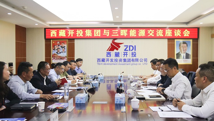 祁騰武對(duì)胡坤和鄧棟一行來訪表示歡迎,并對(duì)三暉電氣、三暉能源長(zhǎng)期以來支持西藏開投的發(fā)展與建設(shè)表示感謝。他表示,西藏?fù)碛胸S富的水力、光伏、風(fēng)能和地?zé)崆鍧嵞茉促Y源,在國(guó)家“雙碳”戰(zhàn)略目標(biāo)下,儲(chǔ)能事業(yè)能有效提升清潔能源資源利用率和傳輸平穩(wěn)度,有效調(diào)節(jié)電力供應(yīng)結(jié)構(gòu)性不平衡問題,發(fā)展?jié)摿薮?。西藏開投作為西藏自治區(qū)唯一的清潔能源產(chǎn)業(yè)集團(tuán),根植西藏綠色能源、清潔能源開發(fā)利用領(lǐng)域多年,始終致力于推進(jìn)“一基地兩示范”建設(shè)。希望雙方加強(qiáng)溝通交流,發(fā)揮自身優(yōu)勢(shì),以市場(chǎng)為導(dǎo)向,積極拓展多領(lǐng)域、全方位合作機(jī)會(huì),創(chuàng)新合作模式參與西藏清潔能源發(fā)展建設(shè),提升市場(chǎng)競(jìng)爭(zhēng)力,讓雙向奔赴變雙向成就,樹立國(guó)有企業(yè)和民營(yíng)企業(yè)合作典范,推動(dòng)西藏清潔能源產(chǎn)業(yè)高質(zhì)量發(fā)展邁上新臺(tái)階。