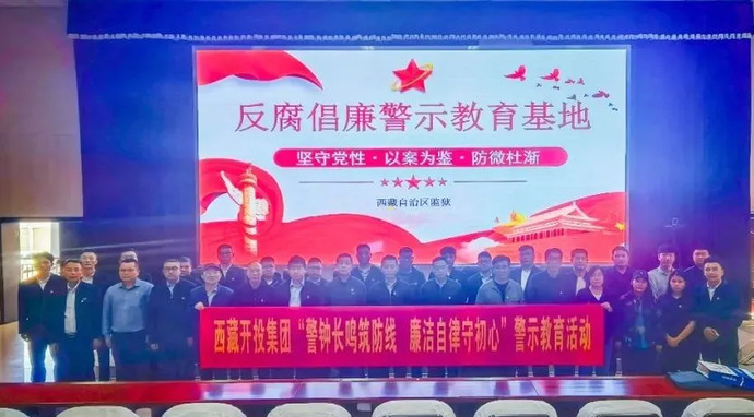 為扎實開展深入貫徹中央八項規(guī)定精神學習教育,堅定不移推進全面從嚴治黨向縱深發(fā)展,筑牢黨員干部職工拒腐防變思想堤壩,6月26日,西藏開投集團組織黨員干部職工赴西藏自治區(qū)監(jiān)獄管理局廉政警示教育基地開展“警鐘長鳴筑防線,廉潔自律守初心”警示教育活動。集團黨委委員、副總經理溫勇、尼瑪與集團總部、所屬單位黨員干部職工共70余人參加活動。