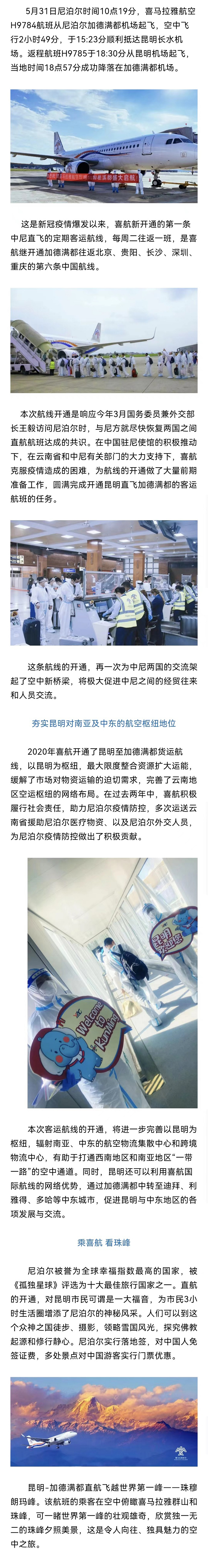 喜航開通加德滿都直飛昆明客運(yùn)新航線