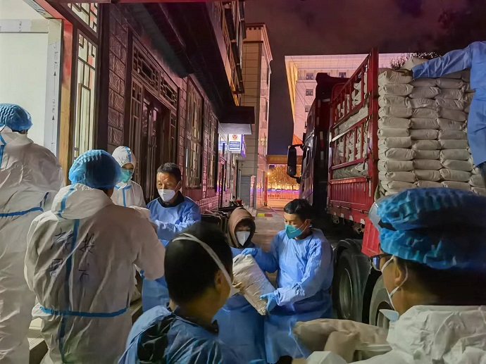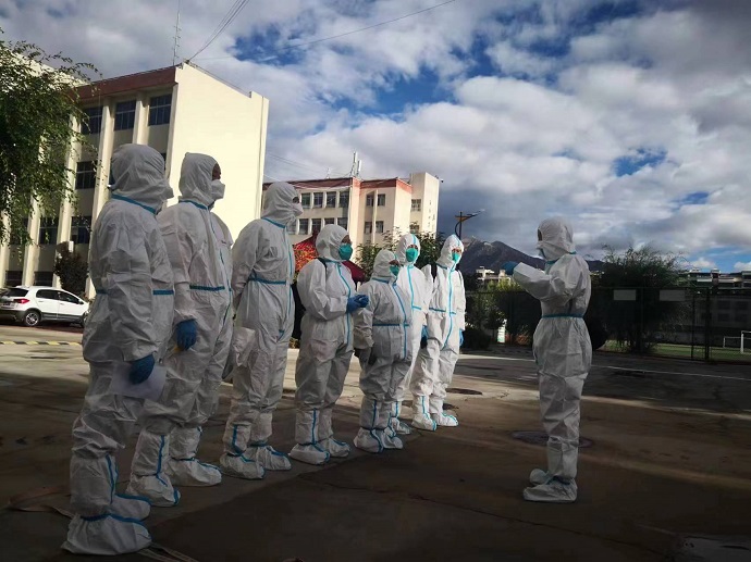 進(jìn)駐 “疫”線后,集團(tuán)公司副總經(jīng)理尼瑪親任志愿服務(wù)隊(duì)隊(duì)長,迅速組建后勤保障組、工作聯(lián)系組、防疫信息組、時(shí)事宣傳組,為做好志愿服務(wù)疫情防控工作提供組織保障。志愿服務(wù)隊(duì)各盡其職、團(tuán)結(jié)一心、分工協(xié)作。據(jù)統(tǒng)計(jì),截至9月26日,已完成米、面、糌粑等重要物資裝卸、轉(zhuǎn)運(yùn)45.98噸,完成新冠病毒核酸檢測7530人次,對陽性居住區(qū)進(jìn)行消毒消殺12戶。