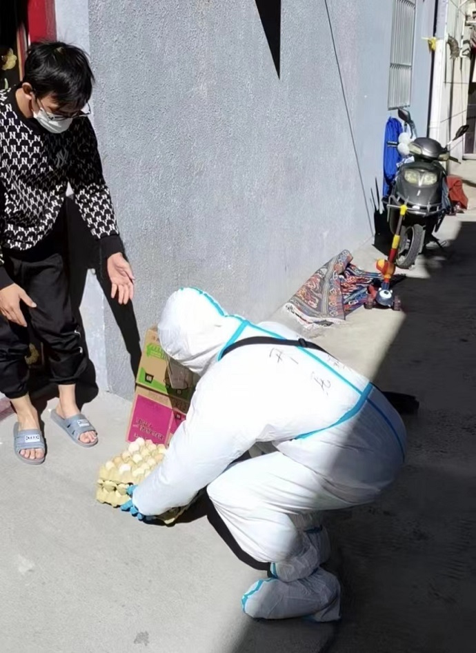 在下沉服務(wù)中,尼瑪?shù)弥鐓^(qū)里一位名為次仁卓瑪?shù)呐⑸顕?yán)重困難,立刻前往幫助。據(jù)了解,次仁卓瑪來自林芝市工布江達(dá)縣,因疫情暫時(shí)滯留在拉薩。她的母親和姑姑因病在拉薩市人民醫(yī)院就醫(yī),年邁的奶奶隨行照顧。父親和哥哥也去了方艙,留下她跟一位親戚居家隔離。這些日子,靠著政府免費(fèi)發(fā)放的大米、糌粑維持生活。生活的窘迫,讓女孩幾度哽咽。尼瑪安慰鼓勵道:“孩子,困難是暫時(shí)的,你作為家里唯一的大學(xué)生,不能被打倒,你要堅(jiān)強(qiáng)起來。我們是人民政府派來的志愿者,我們會想辦法解決困難,孩子要笑起來,相信勝利很快就能到來!”隨后,尼瑪和楊俊生為其愛心捐款1000元,劉青松為其送去蔬菜、雞蛋等生活物資。寬心的話語、暖心的行動,讓這個堅(jiān)強(qiáng)的女孩,露出了格桑花般燦爛的笑容。