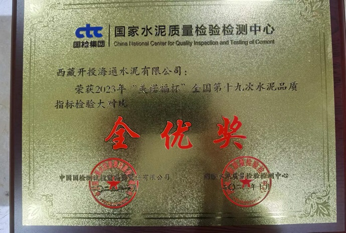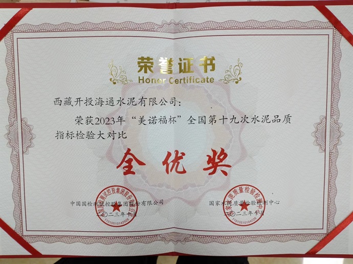 西藏開(kāi)投海通水泥公司喜獲全國(guó)水泥檢驗(yàn)大對(duì)比“全優(yōu)獎(jiǎng)”