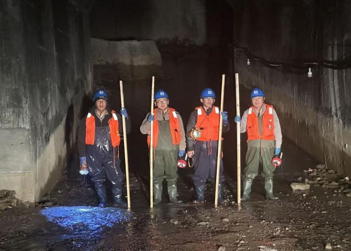 12月3日,公司組織對全長16.3公里的灌溉輸水洞開展全面檢查,重點排查長期運行中可能存在的凍融破壞、巖體應(yīng)力變化等隱患。經(jīng)細(xì)致檢測,輸水洞整體運行狀態(tài)良好,完全滿足今冬明春供水需求,為后續(xù)灌溉工作奠定了堅實的安全基礎(chǔ)。