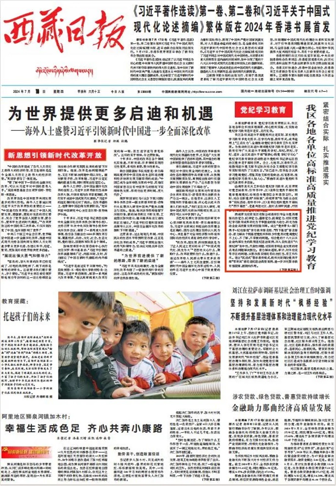 編者按:7月18日,西藏日?qǐng)?bào)報(bào)道了《緊密結(jié)合實(shí)際 扎實(shí)推進(jìn)落實(shí) 我區(qū)各地各單位高標(biāo)準(zhǔn)高質(zhì)量推進(jìn)黨紀(jì)學(xué)習(xí)教育》文章。摘要如下: