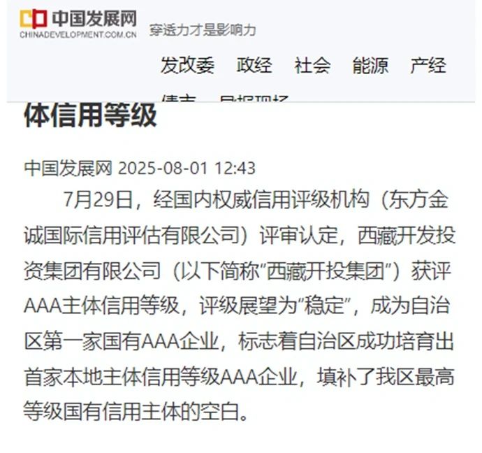 媒體報(bào)道丨西藏誕生首家AAA級(jí)國有企業(yè)