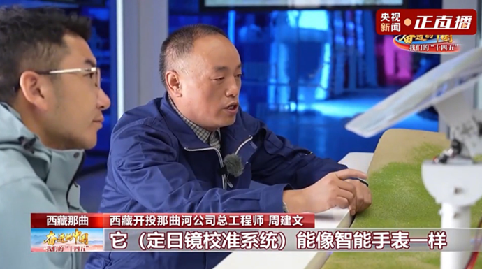 西藏開投那曲河公司總工程師周建文說:“它是我們電站的一個(gè)定日鏡,它很智能,它頭頂裝了太陽(yáng)能追蹤器。它(定日鏡校準(zhǔn)系統(tǒng))能像智能手表一樣,監(jiān)測(cè)'心跳',能夠?qū)崟r(shí)監(jiān)測(cè)太陽(yáng)的方位角和高度角,精度達(dá)0.1度。”