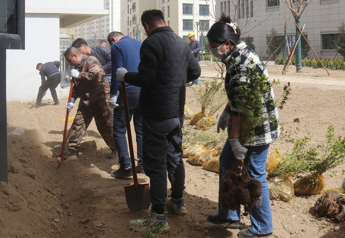 活動現(xiàn)場,在聽取工作人員講解植樹注意事項(xiàng)后,大家三五一組、分工協(xié)作,有的揮鍬鏟土、填苗澆水,有的培土圍堰、澆水灌溉,還有的清掃垃圾、搬運(yùn)雜物。現(xiàn)場氣氛活躍、組織有序,呈現(xiàn)出一片熱火朝天的忙碌景象。每道工序一絲不茍、認(rèn)真細(xì)致,展現(xiàn)了團(tuán)結(jié)協(xié)作、奮發(fā)向上的精神風(fēng)貌。