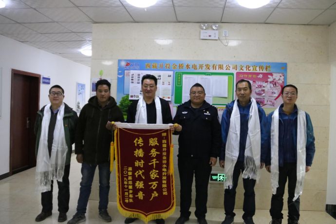 12月4日,尼屋鄉(xiāng)派出所副所長多吉帶領(lǐng)尼屋鄉(xiāng)扶貧車隊代表將“服務(wù)千家萬戶 傳播時代強音”錦旗遞送到西藏開投金橋水電開發(fā)有限公司(以下簡稱“金橋公司”)副總經(jīng)理李輝手中,表達對金橋公司的深深謝意。