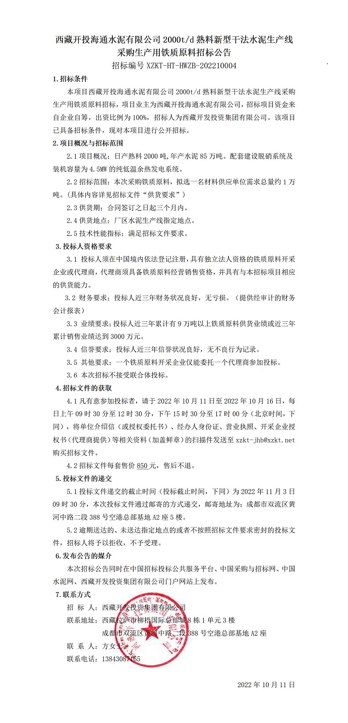 采購生產(chǎn)用鐵質(zhì)原料招標(biāo)公告