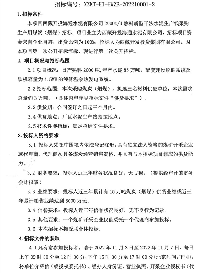 采購生產(chǎn)用煤炭(煙煤)二次招標公告