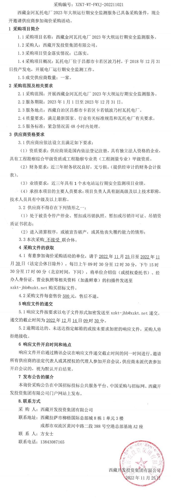 西藏金河瓦托電廠2023年大壩運(yùn)行期安全監(jiān)測服務(wù)