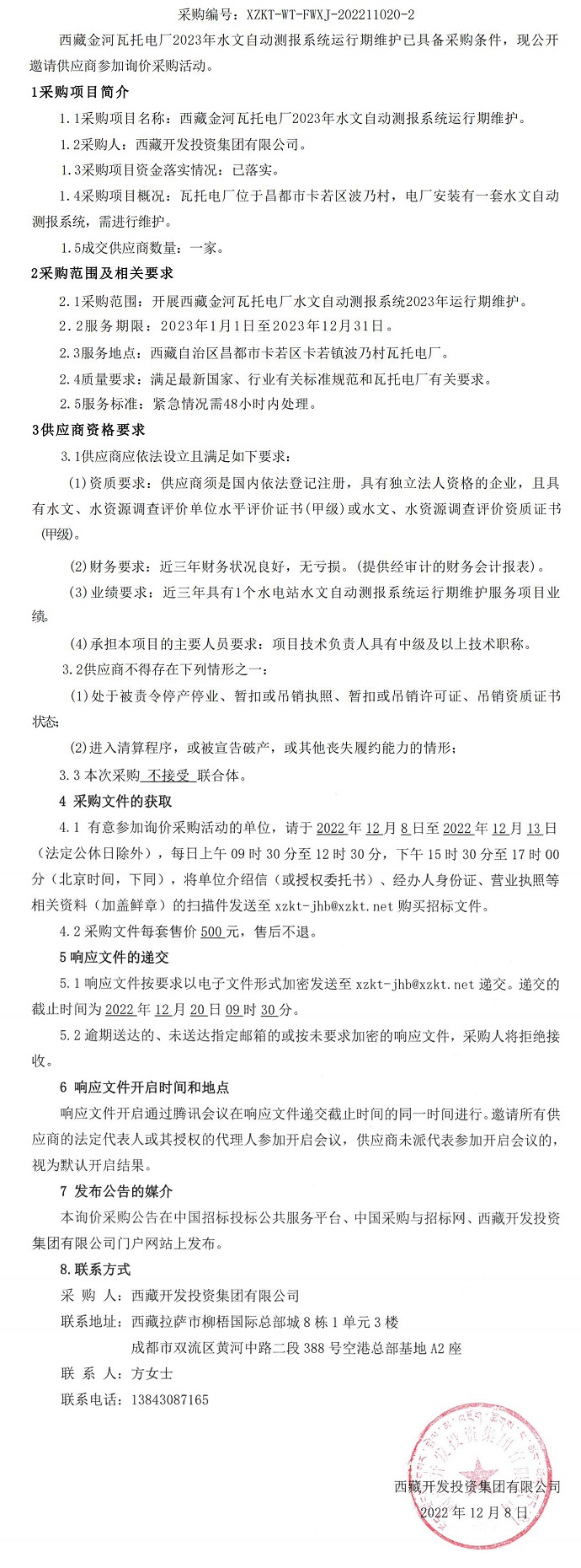 西藏金河瓦托電廠2023年水文自動測報系統(tǒng)運行期