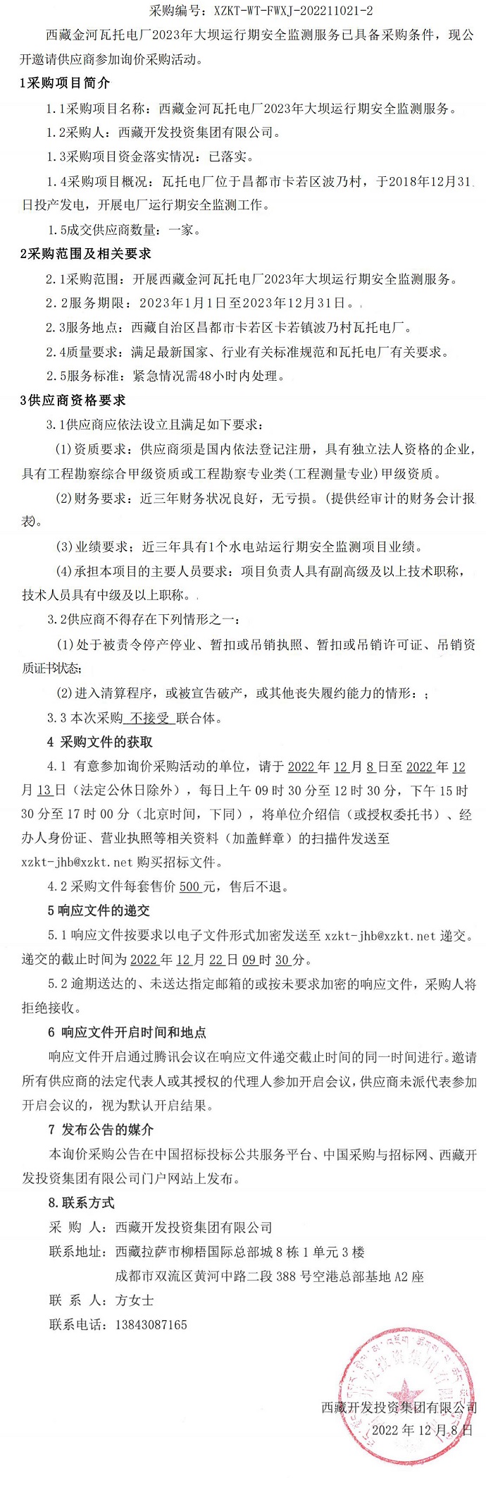 西藏金河瓦托電廠2023年大壩運(yùn)行期安全監(jiān)測(cè)服務(wù)