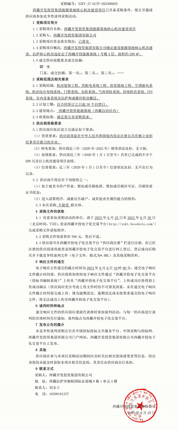 西藏開發(fā)投資集團(tuán)拉薩能源基地核心機(jī)房建設(shè)項目談判公告