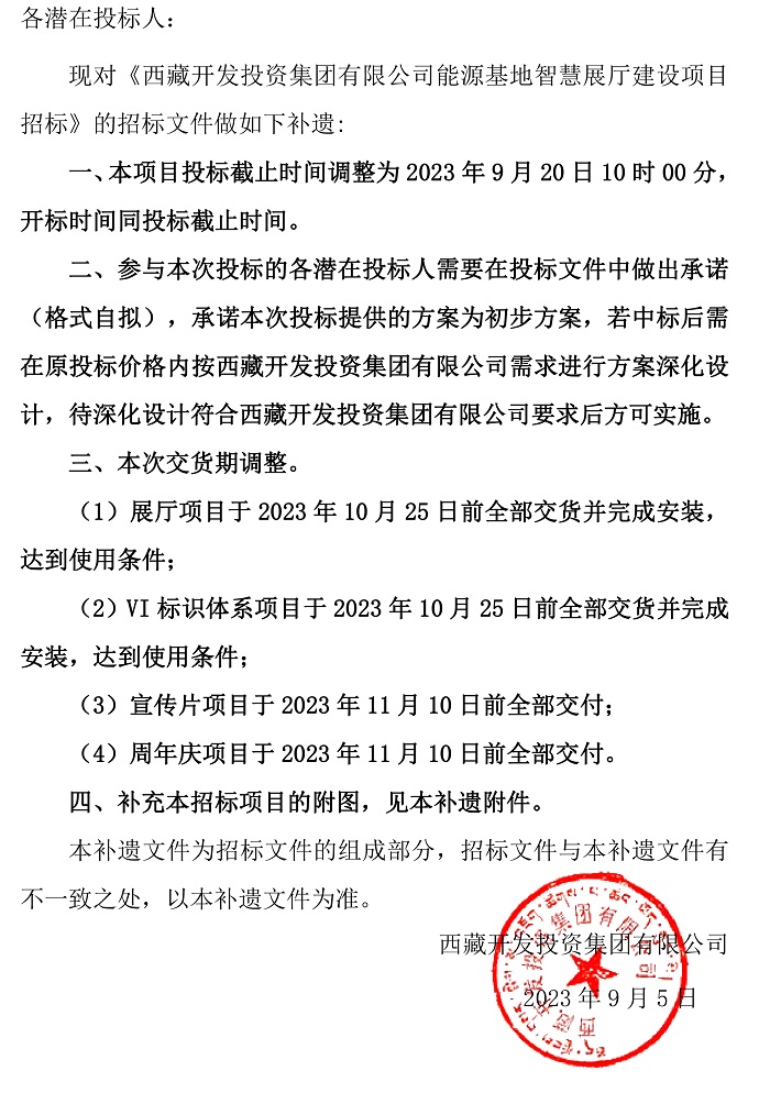 西藏開發(fā)投資集團有限公司能源基地智慧展廳建設項目招標