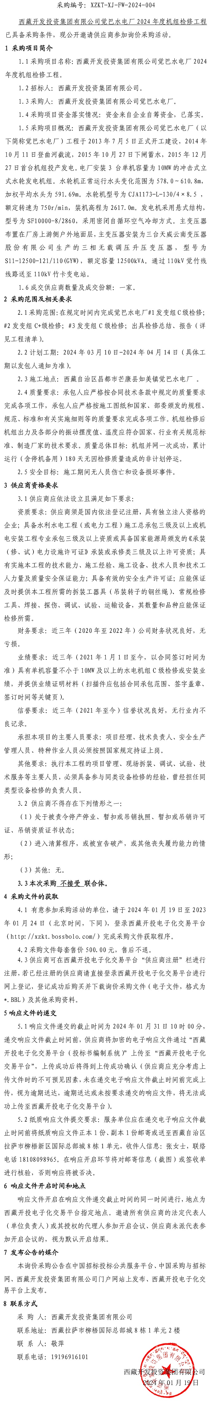 西藏開發(fā)投資集團(tuán)有限公司覺巴水電廠2024年度機(jī)組檢修工程詢價(jià)采購(gòu)公告