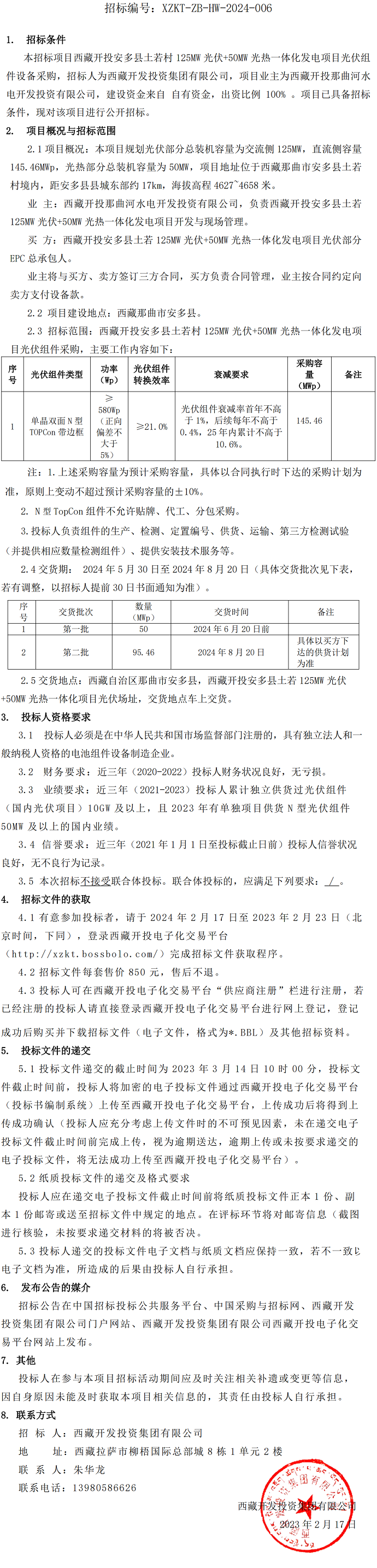 西藏開投安多縣土若村125MW光伏+50MW光熱一體化發(fā)電項(xiàng)目光伏組件設(shè)備采購招標(biāo)公告