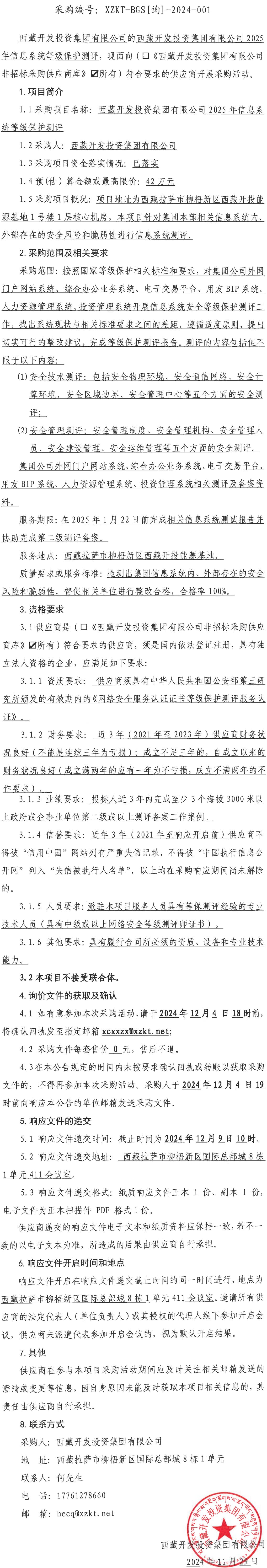 西藏開(kāi)發(fā)投資集團(tuán)有限公司2025年信息系統(tǒng)等級(jí)保護(hù)測(cè)評(píng)詢(xún)價(jià)采購(gòu)公告