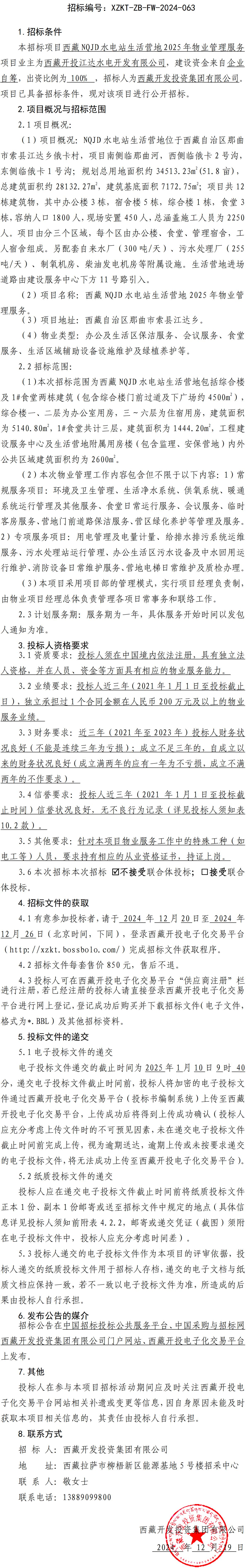 西藏NQJD水電站生活營地 2025 年物業(yè)管理服務(wù)招標公告