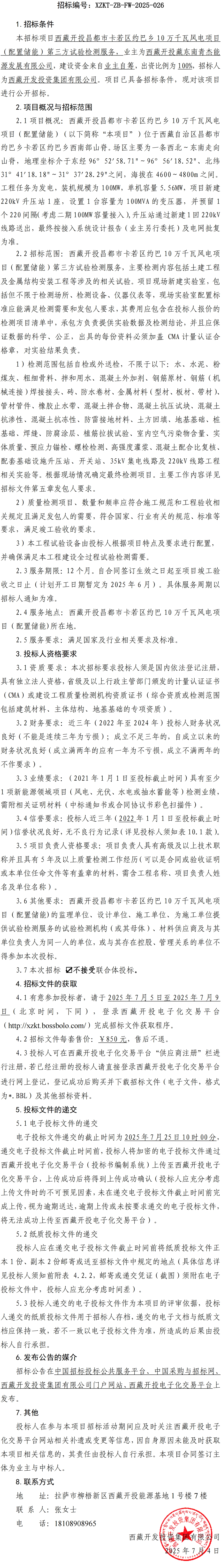 西藏開投昌都市卡若區(qū)約巴鄉(xiāng) 10 萬千瓦風(fēng)電項(xiàng)目(配置儲(chǔ)能) 第三方試驗(yàn)檢測(cè)服務(wù)招標(biāo)公告