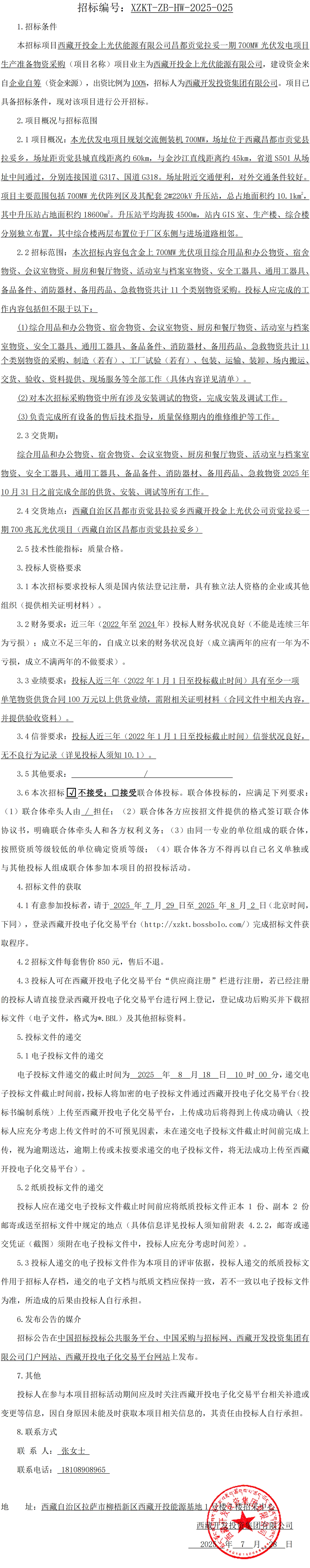西藏開投金上光伏能源有限公司昌都貢覺拉妥一期700MW光伏發(fā)電項(xiàng)目生產(chǎn)準(zhǔn)備物資采購招標(biāo)公告