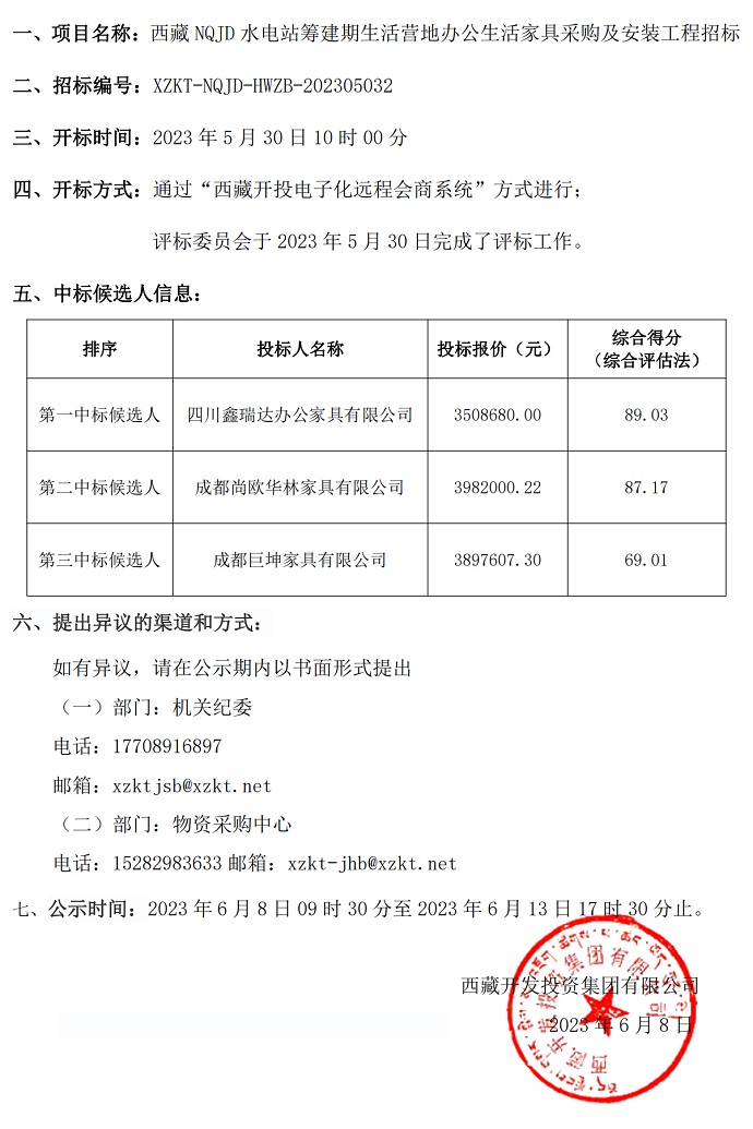 中標候選人公示