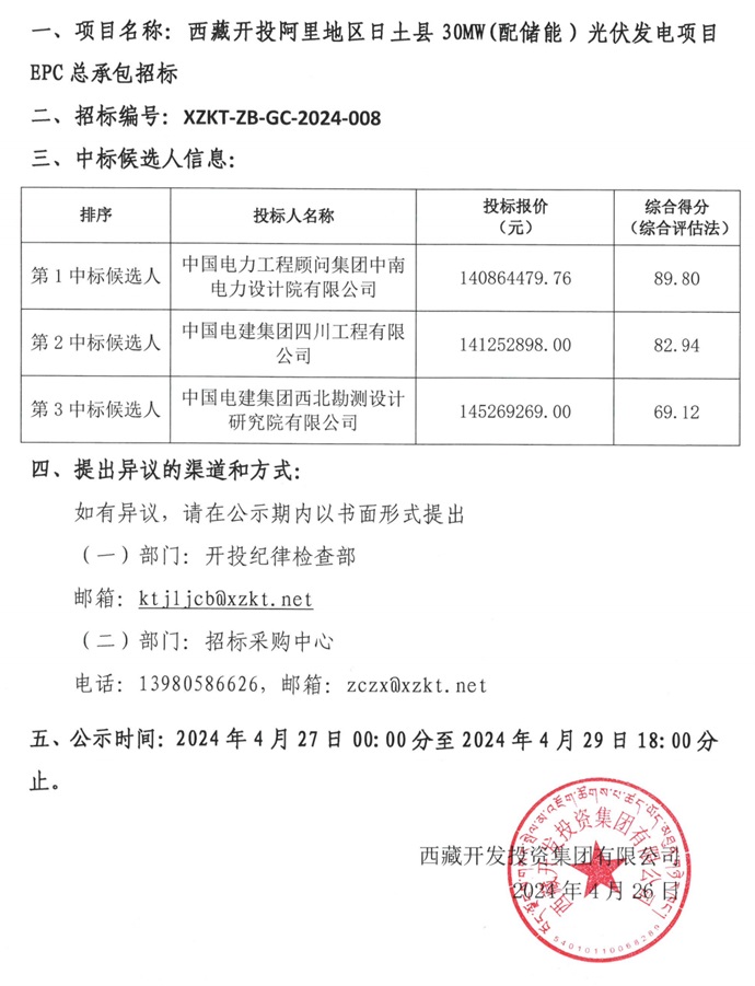 中標候選人公示