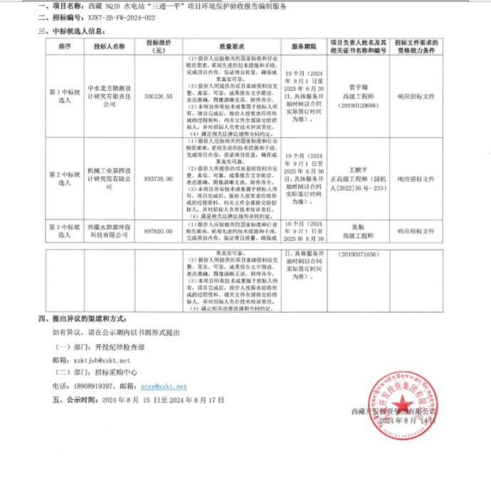 中標(biāo)候選人公示